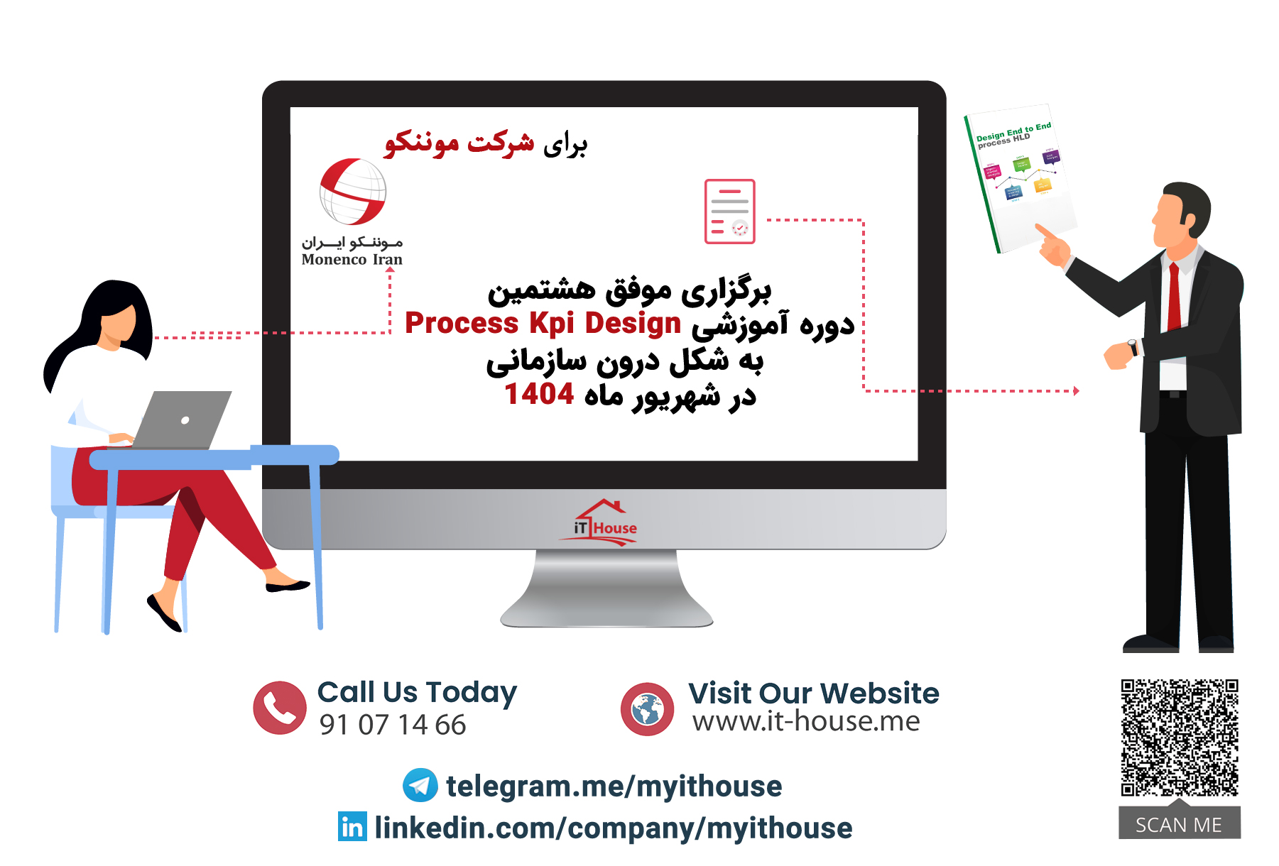 به گزارش واحد آموزش شرکت IT House، هشتمین دوره تخصصی طراحی شاخصهای کلیدی فرآیند (Process KPI Design) در شهریورماه ۱۴۰۴ بهصورت درونسازمانی برای شرکت موننکو با موفقیت برگزار شد. این دوره با هدف توانمندسازی کارشناسان و مدیران محترم سازمان در زمینه طراحی و پیادهسازی شاخصهای کلیدی عملکرد فرآیندها، توسط تیم آموزشی IT House برنامهریزی و اجرا گردید.