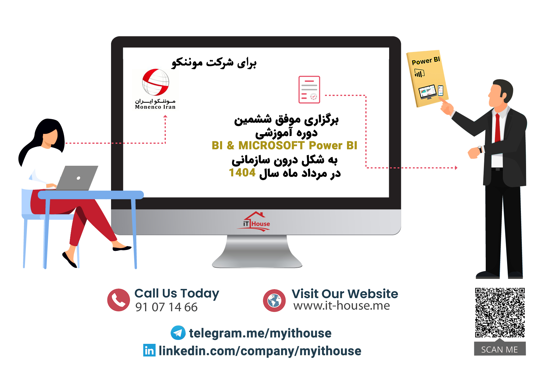 به گزارش واحد آموزش شرکت IT House، ششمین دوره تخصصی هوش تجاری (Business Intelligence) و Microsoft Power BI در مردادماه سال ۱۴۰۴ بهصورت درونسازمانی برای شرکت موننکو با موفقیت برگزار شد.